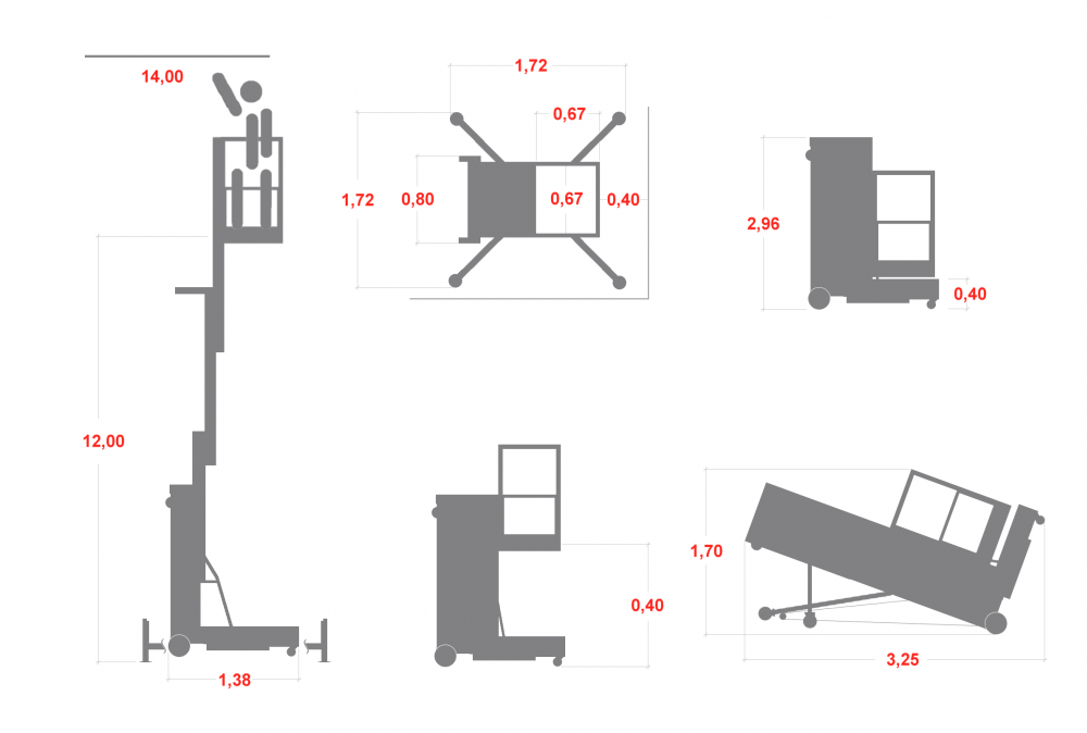 Podest ruchomy przepychany ZP14 150 I (wys. rob. 14,00 m)