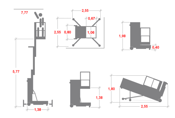 Podest ruchomy przepychany ZP8 200E (wys. rob. 7,77 m) zewn.