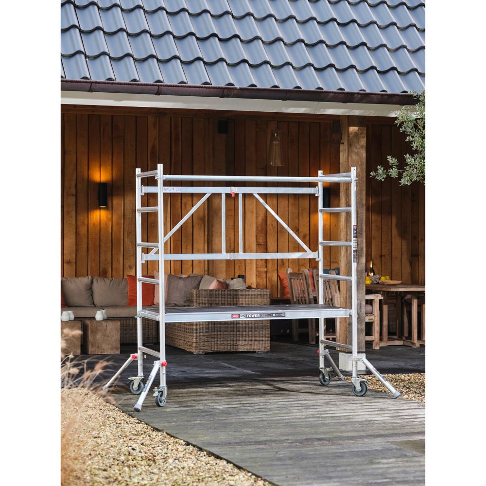 Wieża składana przejezdna Altrex z gamy HEAVY DUTY składa się z czterech modułów. Rozmiar składanej przejezdnej wieży 3400 (0,75 x 1,65) jest idealny do prac zarówno wewnątrz jak i na zewnątrz obiektów.