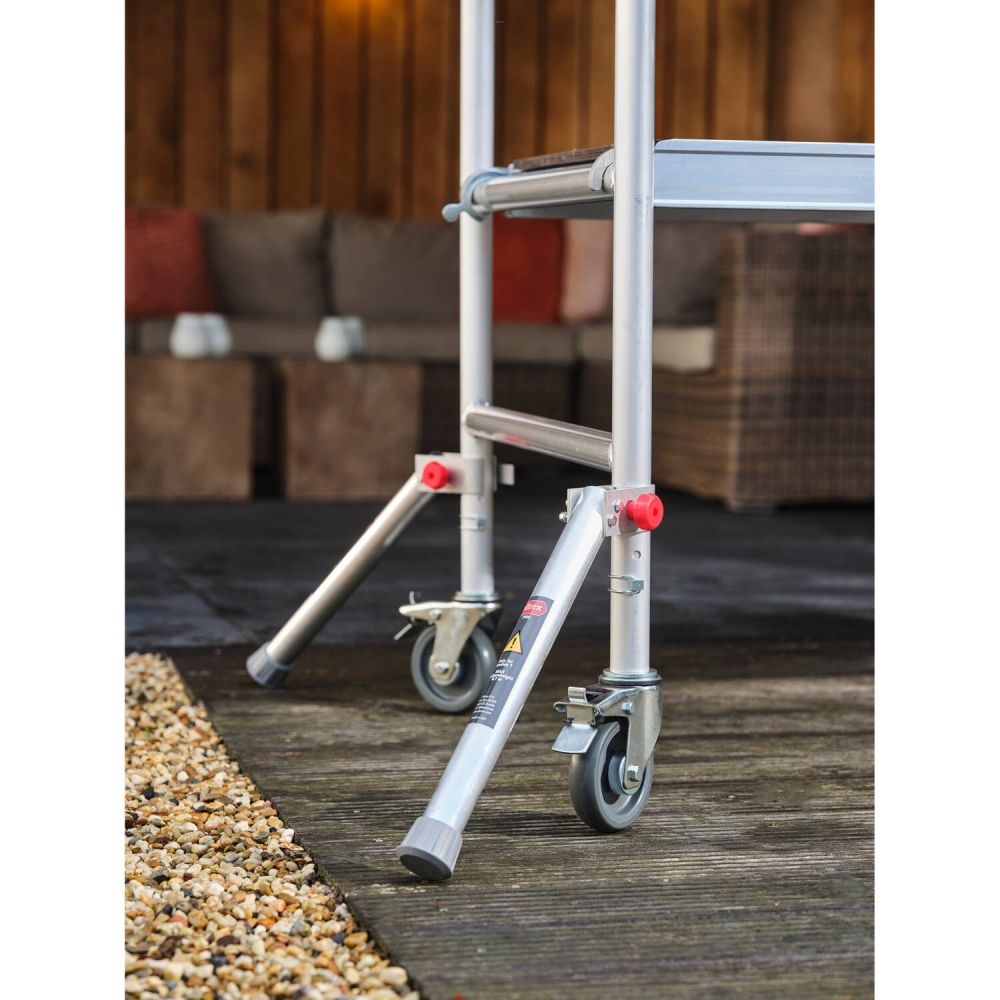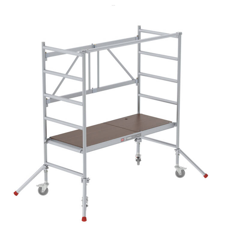 - Składane rusztowanie (moduł 1) może zostać łatwo i szybko przekształcone w rusztowanie przejezdne o wys. roboczej 3,8 m (moduł 1+2) lub (1+2+3) o wys. roboczej 5,8 m lub 7.8 m (1+2+3+3)