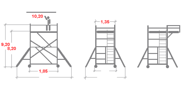 Rusztowanie Altrex 5300 (1,35x1,85m) wys. rob. 10,20m pomost Fiber-deck®