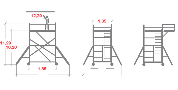 Rusztowanie Altrex 5300 (1,35x1,85m) wys. rob. 12,20m pomost Fiber-deck®