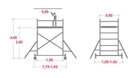 - Wchodzenie odbywa się od wewnętrznej strony rusztowania