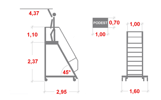- Według normy EN ISO 14 122 od wysokości w pionie powyżej 4000 mm wymagany jest podest przejściowy.